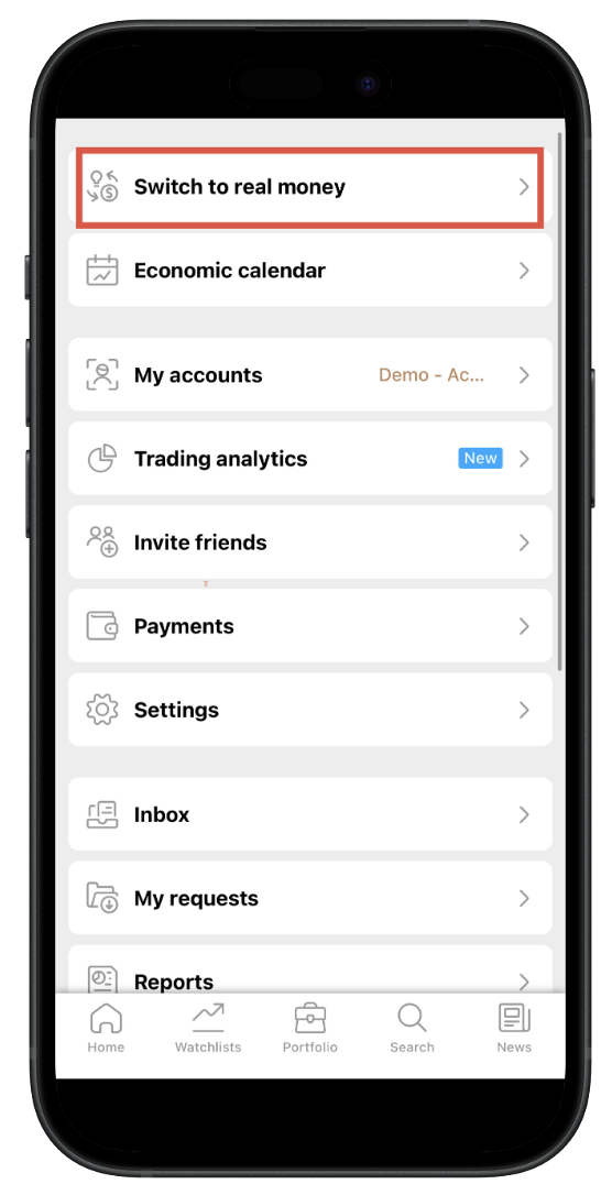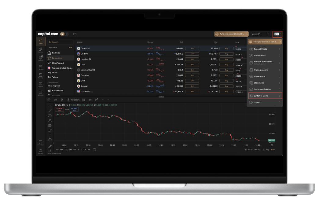 يمكنك بسهولة التبديل بين حسابك التجريبي والحساب الحقيقي في أي وقت.